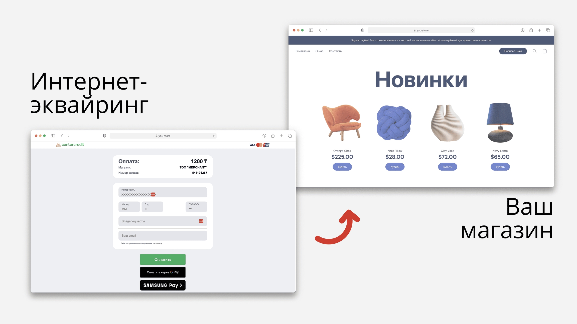 We help business owners connect their online store to Ecom online acquiring from BCC.kz without the need for developers or programming knowledge