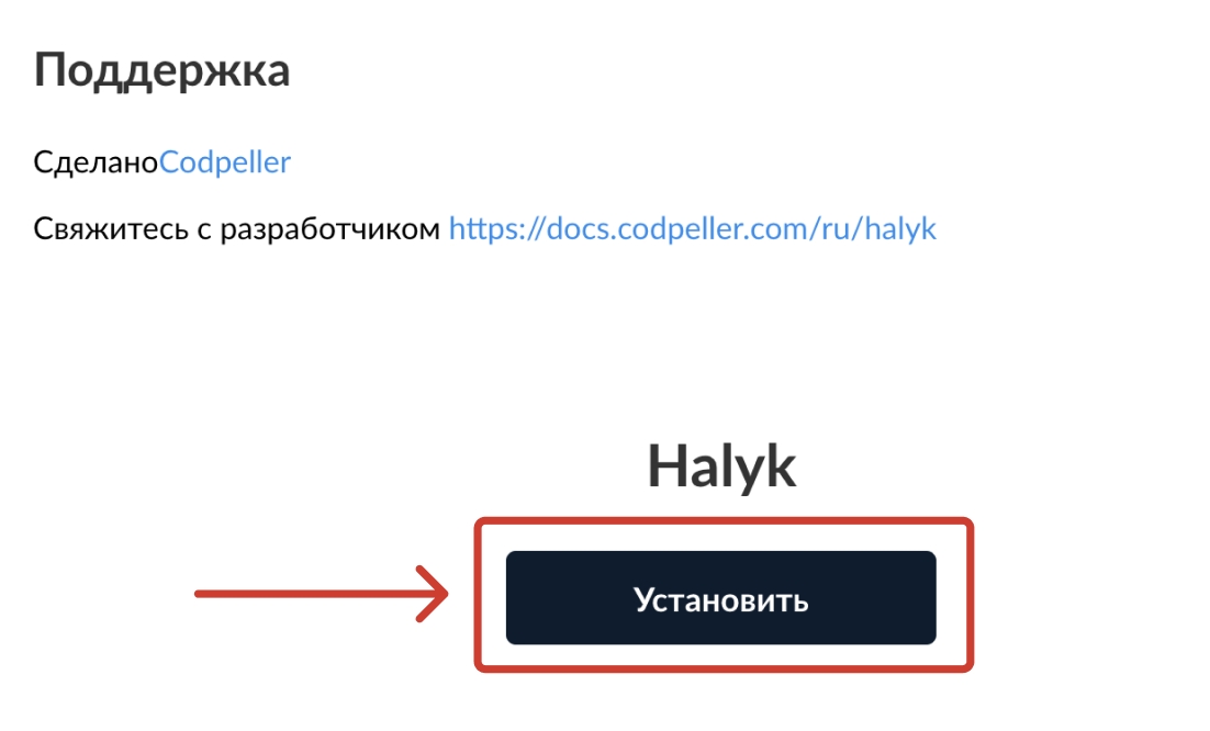 The Halyk Bank app is easily installed in your online store with a single click on the "Install" button