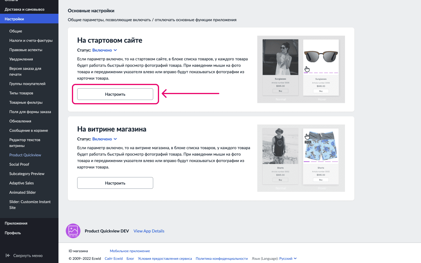 Access the Settings Page After installing the "Product Quickview" app, navigate to the settings pagearrow-up-right. Scroll down to the "Main Settings" section. The app settings are divided into two sections: