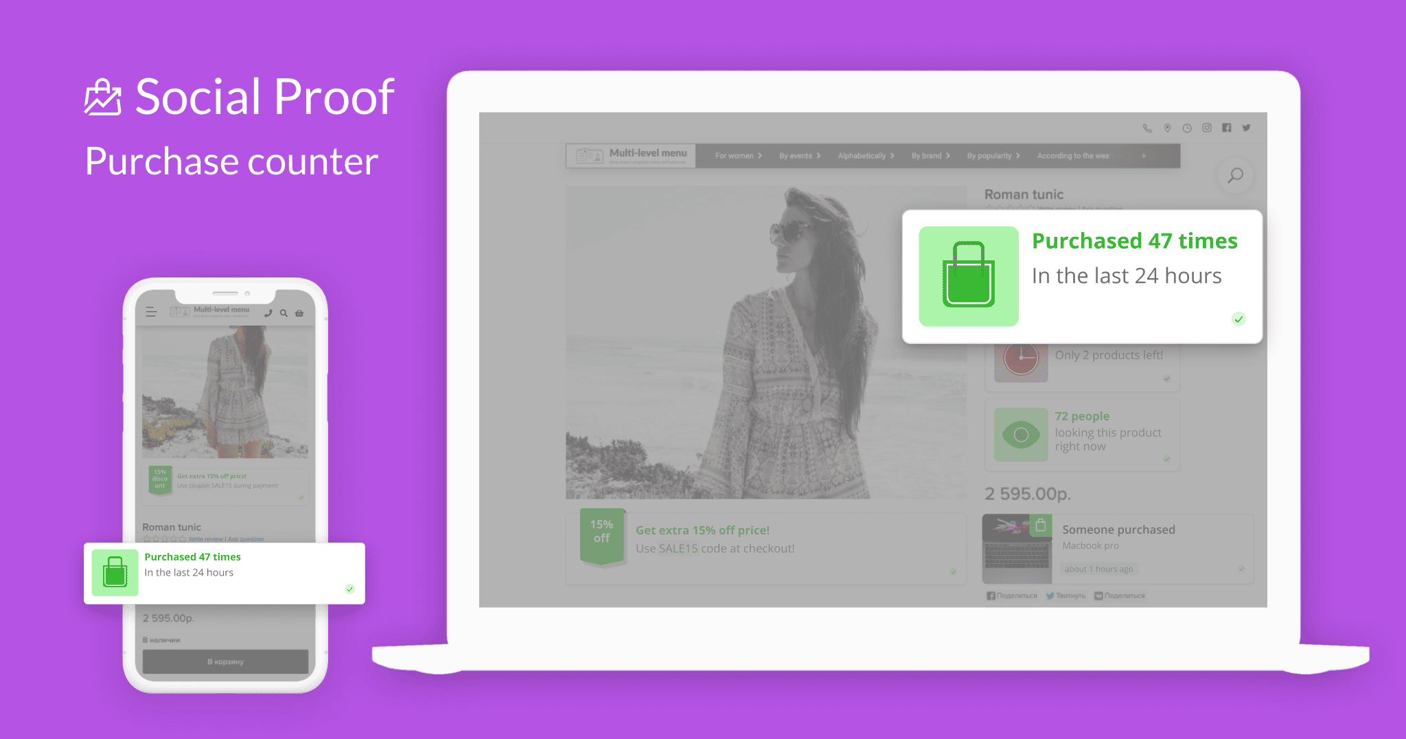 <figure><img src="https://606730935-files.gitbook.io/~/files/v0/b/gitbook-x-prod.appspot.com/o/spaces%2Fb8tXvs0XGg1dcXcoJqFy%2Fuploads%2FFXY7biSz4oy5YGVJN9el%2Fsocial_proof_for_ecwid_Purcashed%2047%20times.png?alt=media&#x26;token=183e8a03-c7e1-4554-86ae-7fa1de0194aa" alt=""><figcaption><p>Product purchase counter</p></figcaption></figure>