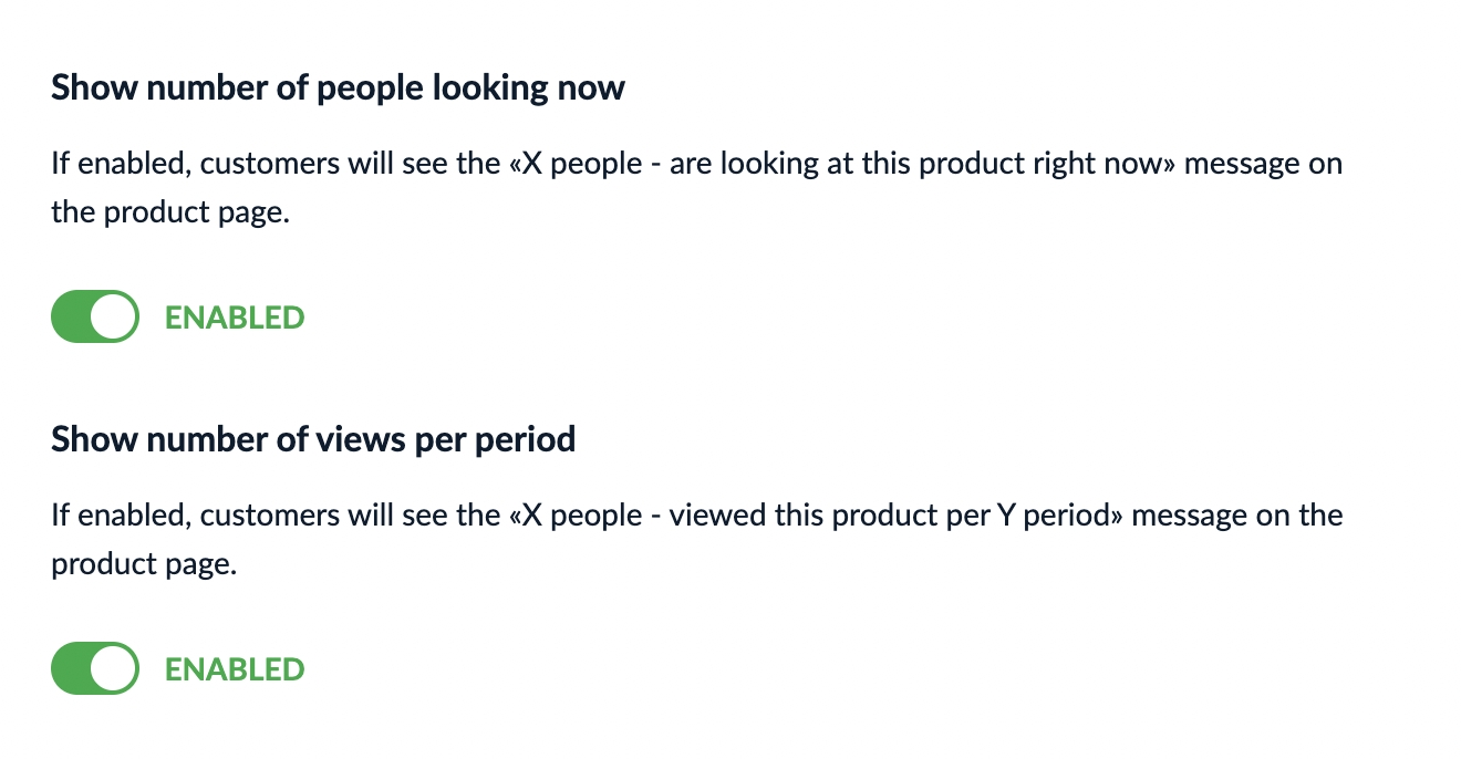 If a message is turned on, it will appear right on the product page (see Fig. 11 and Fig. 12):