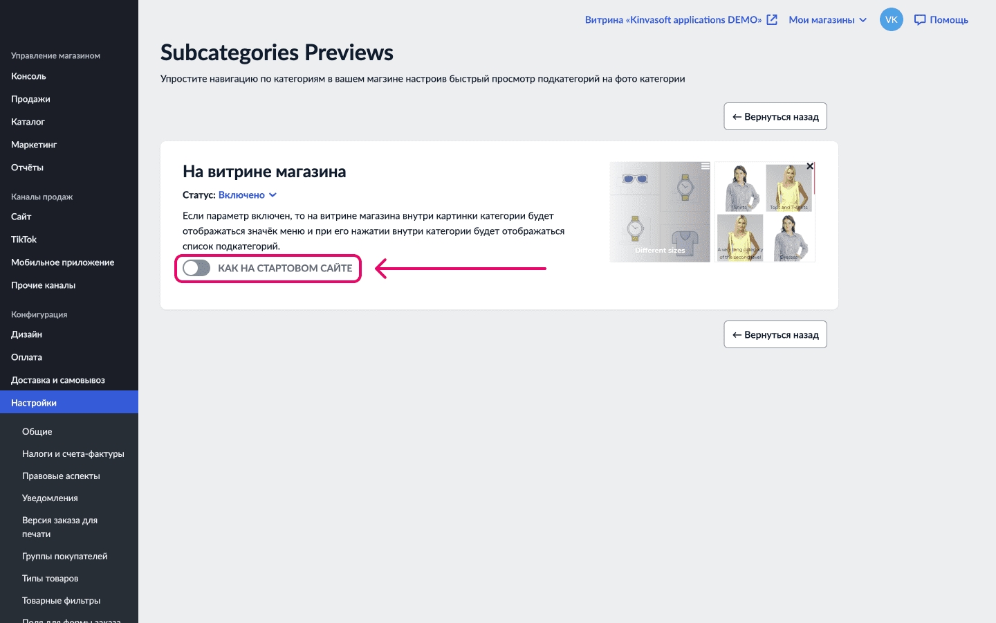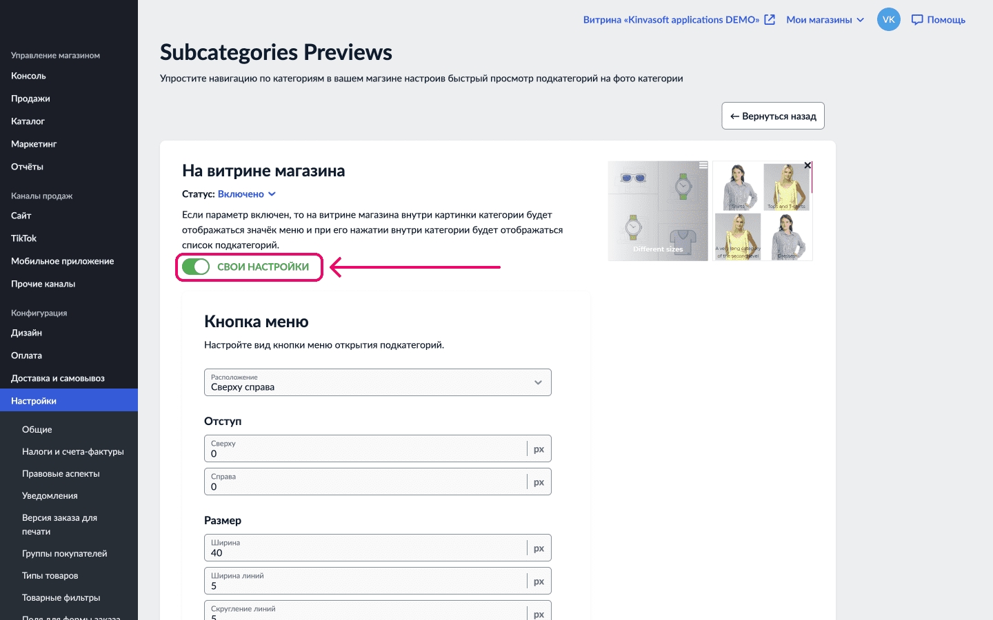 To customize the appearance of the menu button and subcategory list on the storefront, navigate to this section by clicking the "Customize" button (Fig. 3)