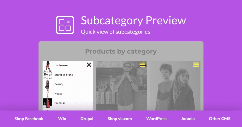 Включите отображение подкатегорий на фото категории, и ваши клиенты смогут быстро находить нужную категорию, выбирать интересующие товары и совершать покупки.