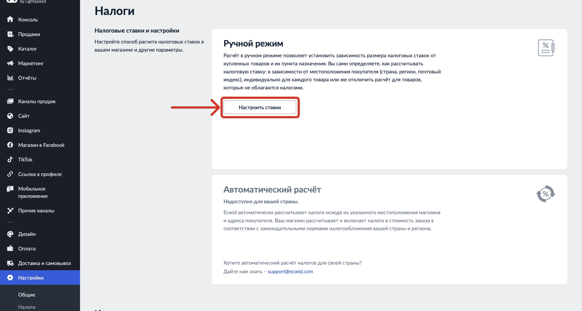 <summary><strong>Шаг. 1.</strong> Переходим в <a href="https://my.ecwid.com/cp/?lang=ru#taxes">личный кабинет</a> интернет-магазина</summary>